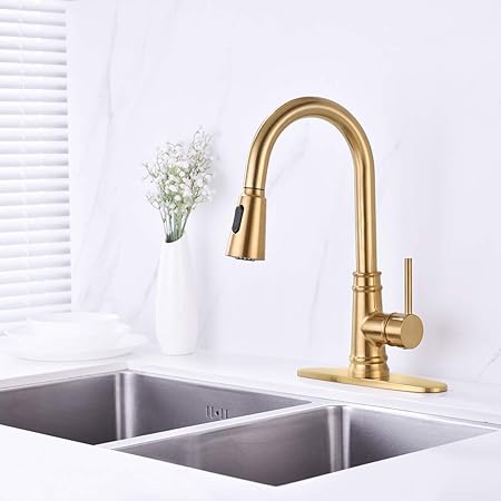 WENKEN Brushed Gold Kitchen Sink Faucet with Pull Down Spray Lead ...